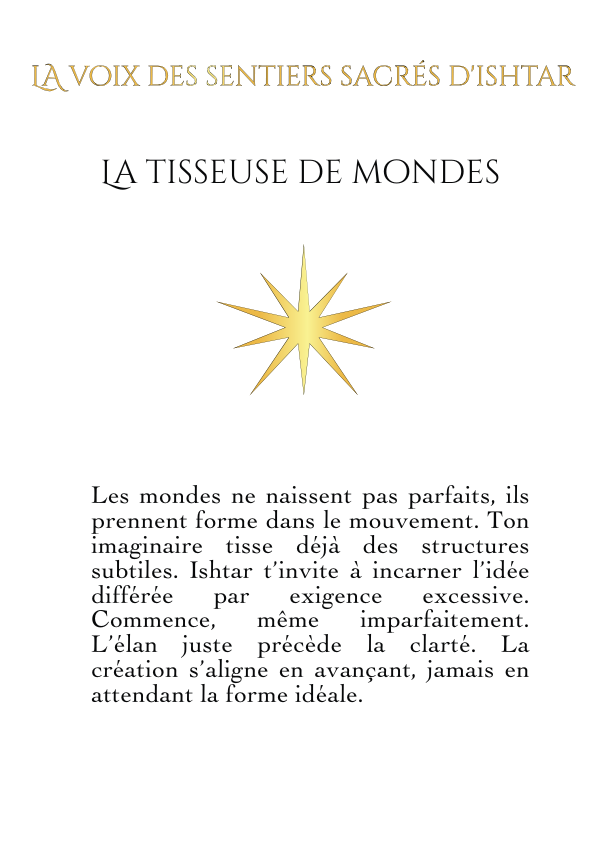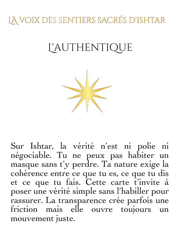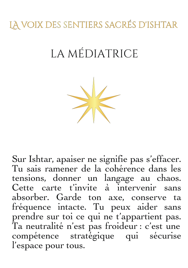 Les messages de l’Oracle d’Ishtar sont structurés, précis, sans complaisance. Ils vont à l’essentiel : voir, comprendre, ajuster, avancer.